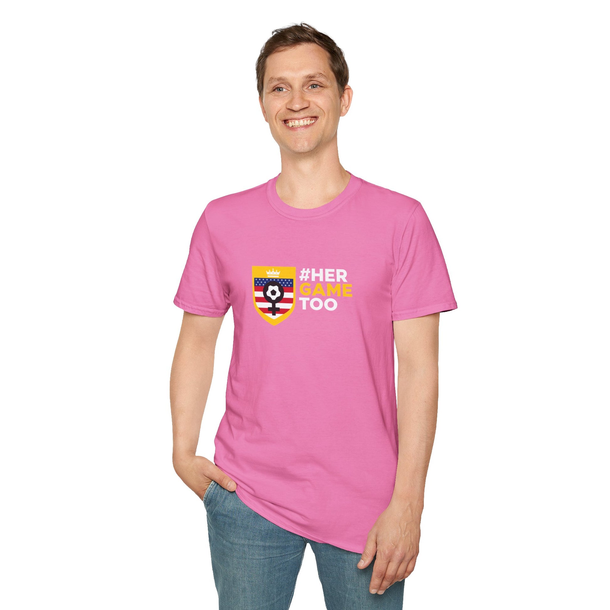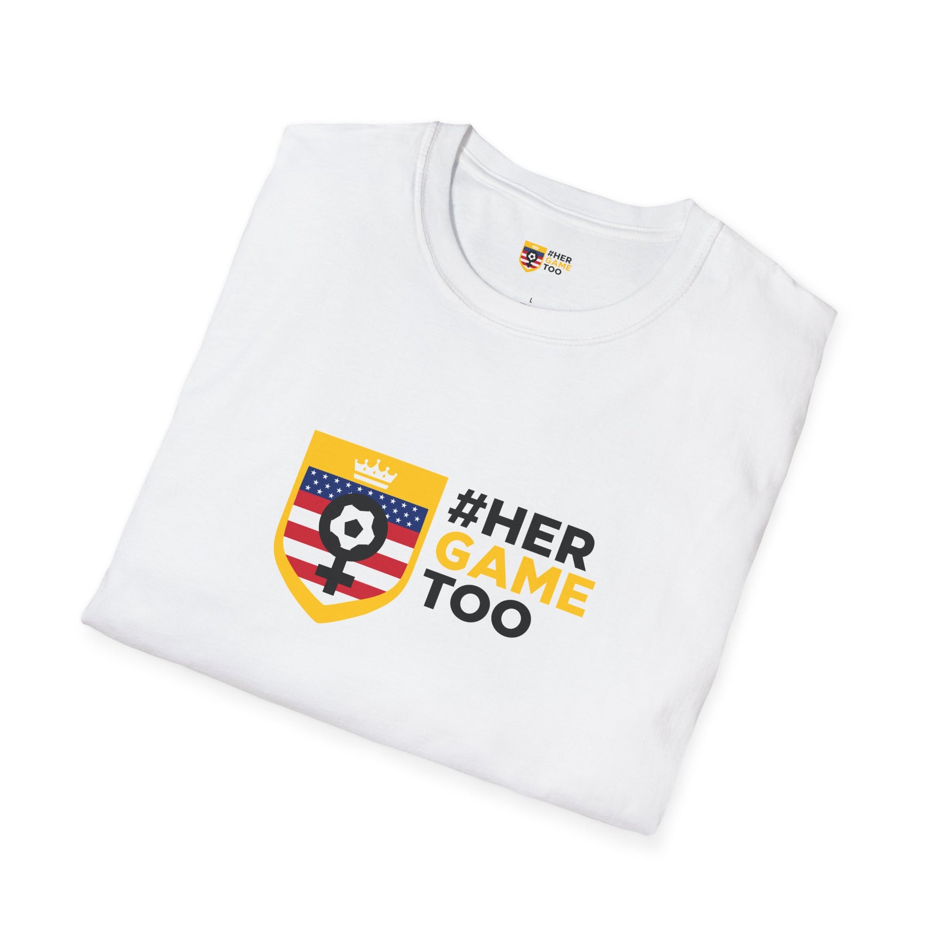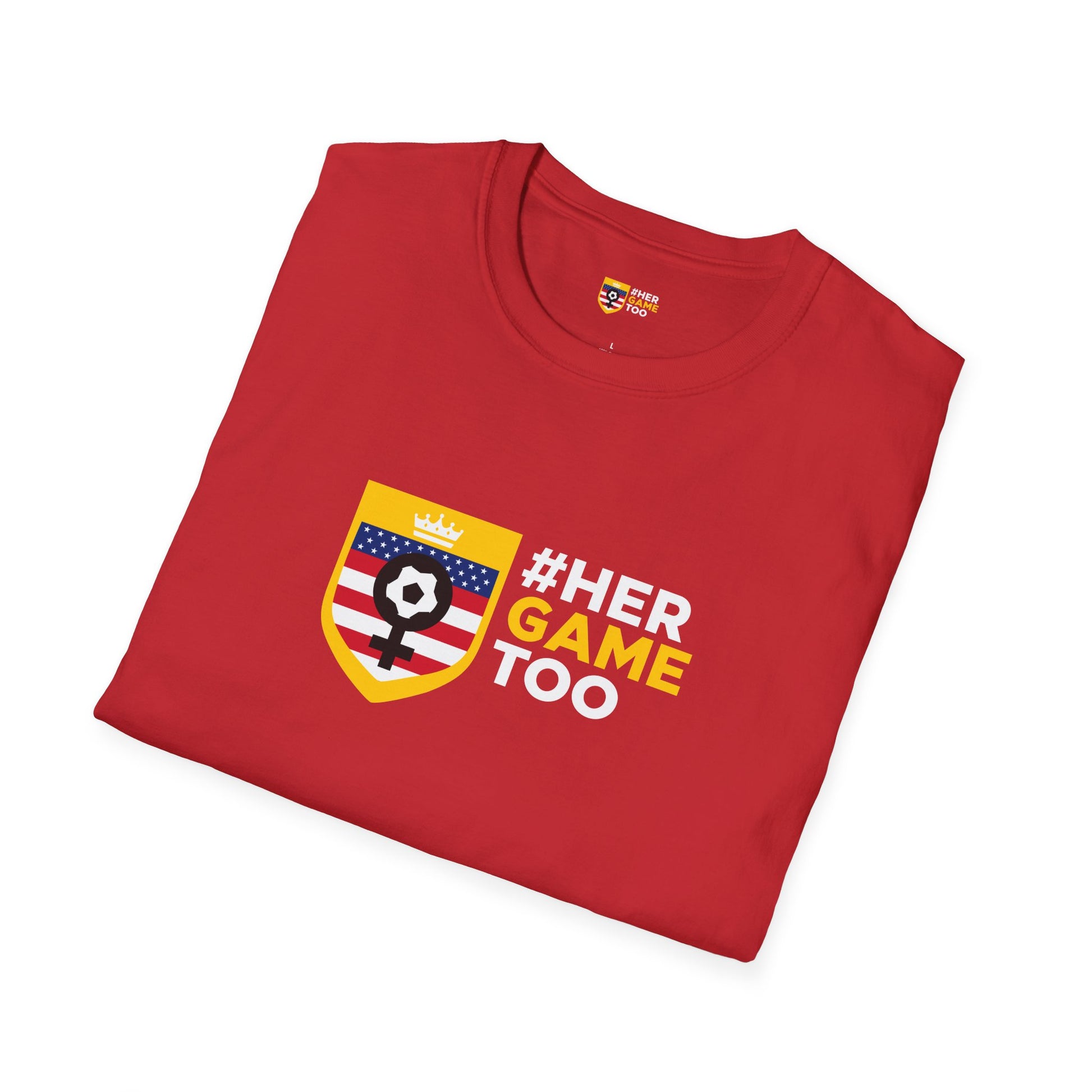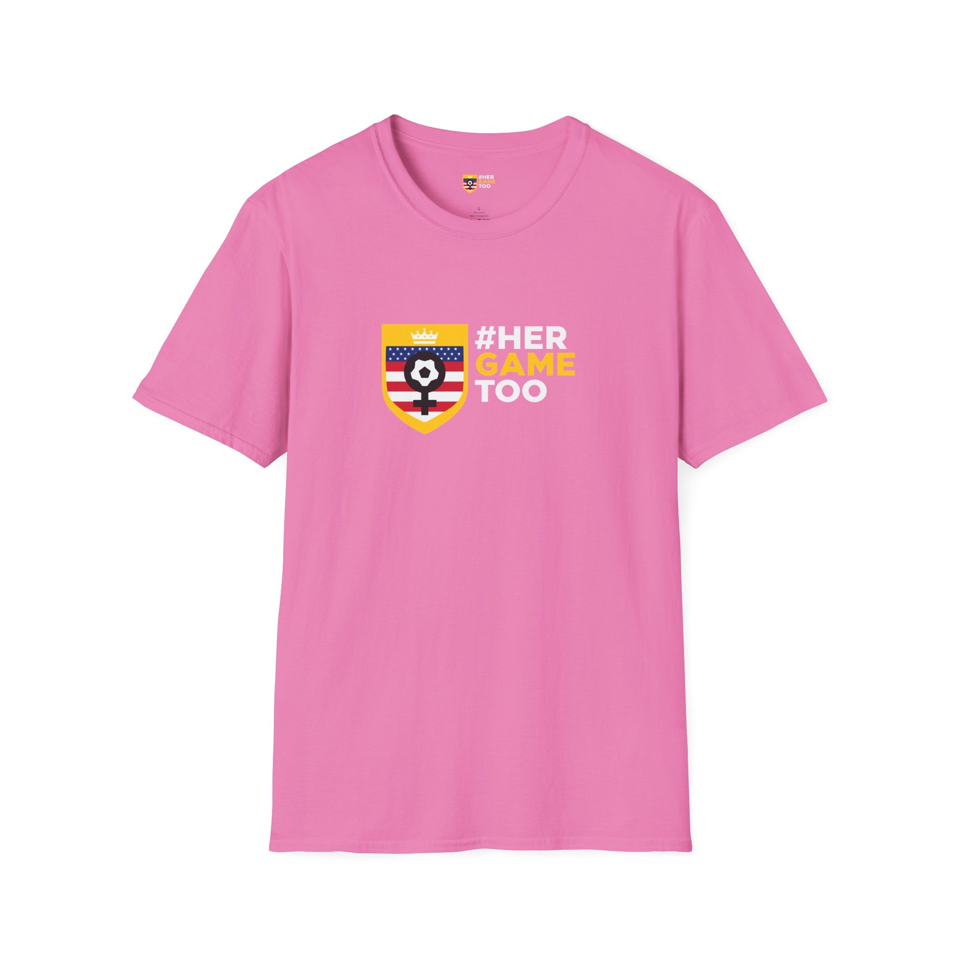 This Her Game Too USA Unisex Softstyle T-Shirt offers a versatile style that can match any occasion, whether formal or semi-formmal. Made with 100% ring-spun cotton, this lightweight fabric feels comfortable all year round. Perfect for adults looking for a durable and smooth fabric for printing. Relevant for celebrating sports events and supporting women in sports.